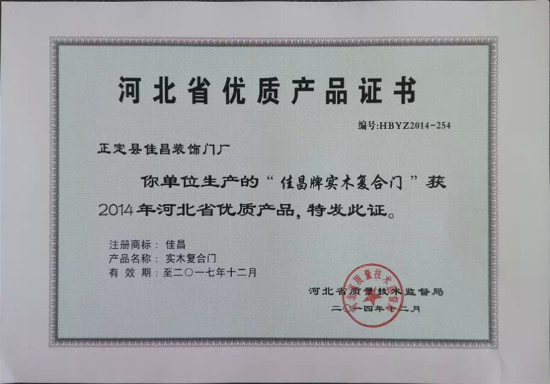 河北省优质产品证书