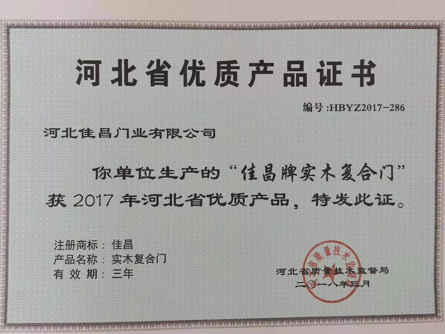 优质产品证书
